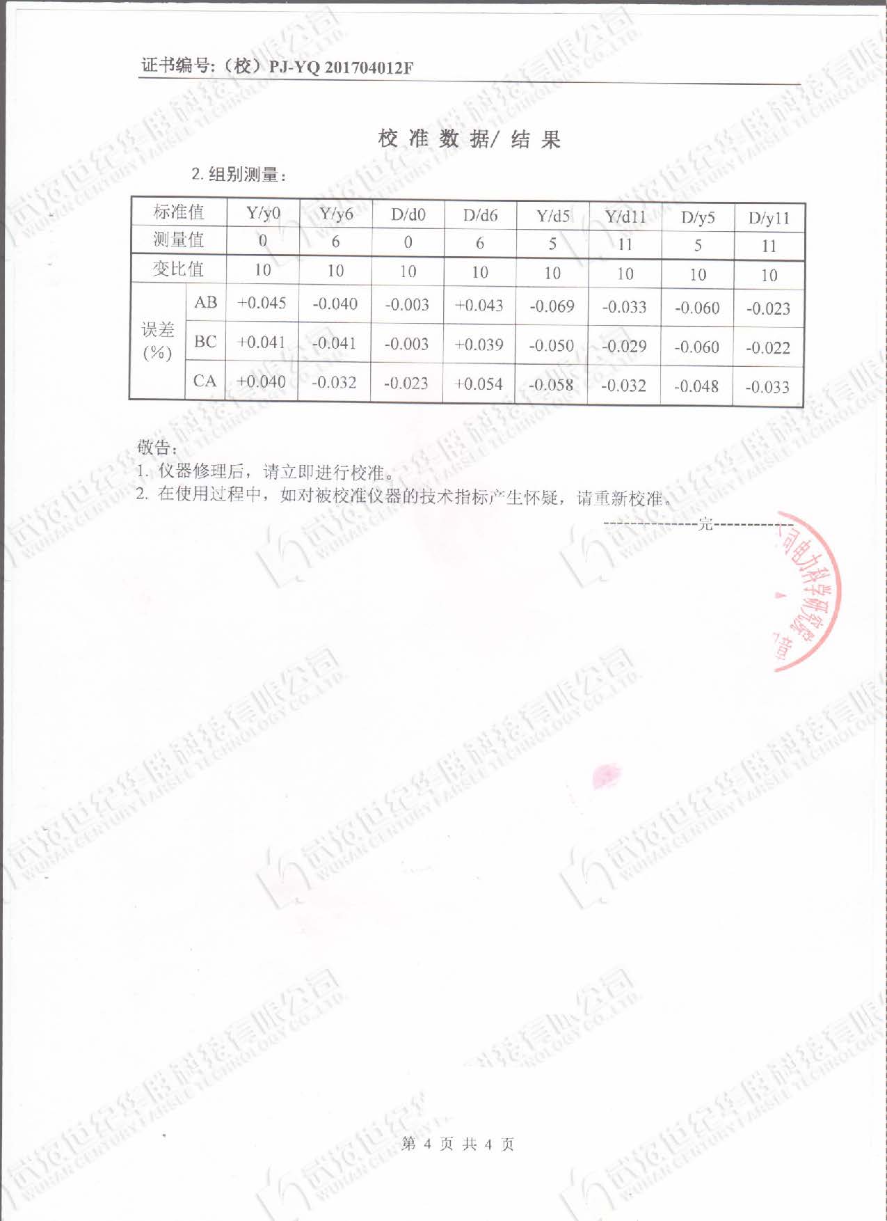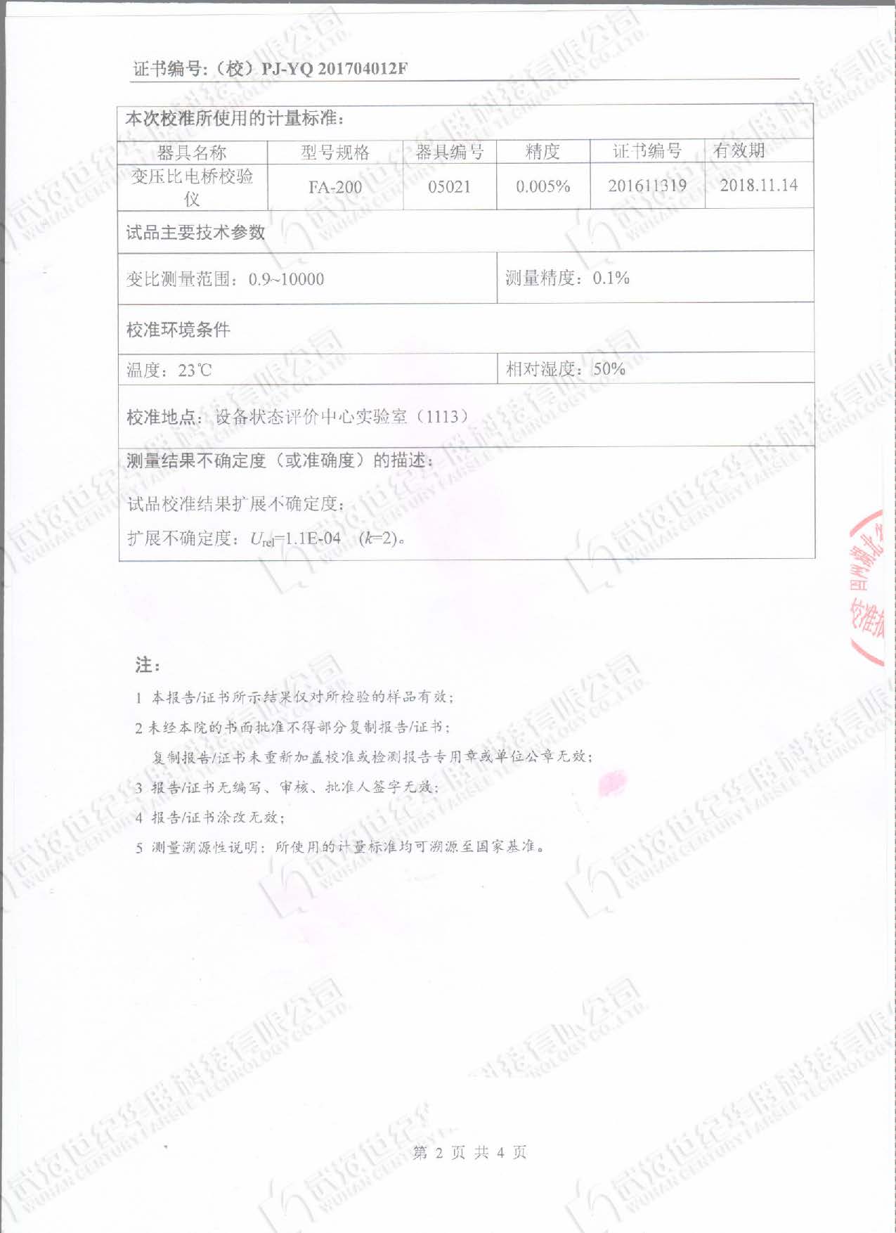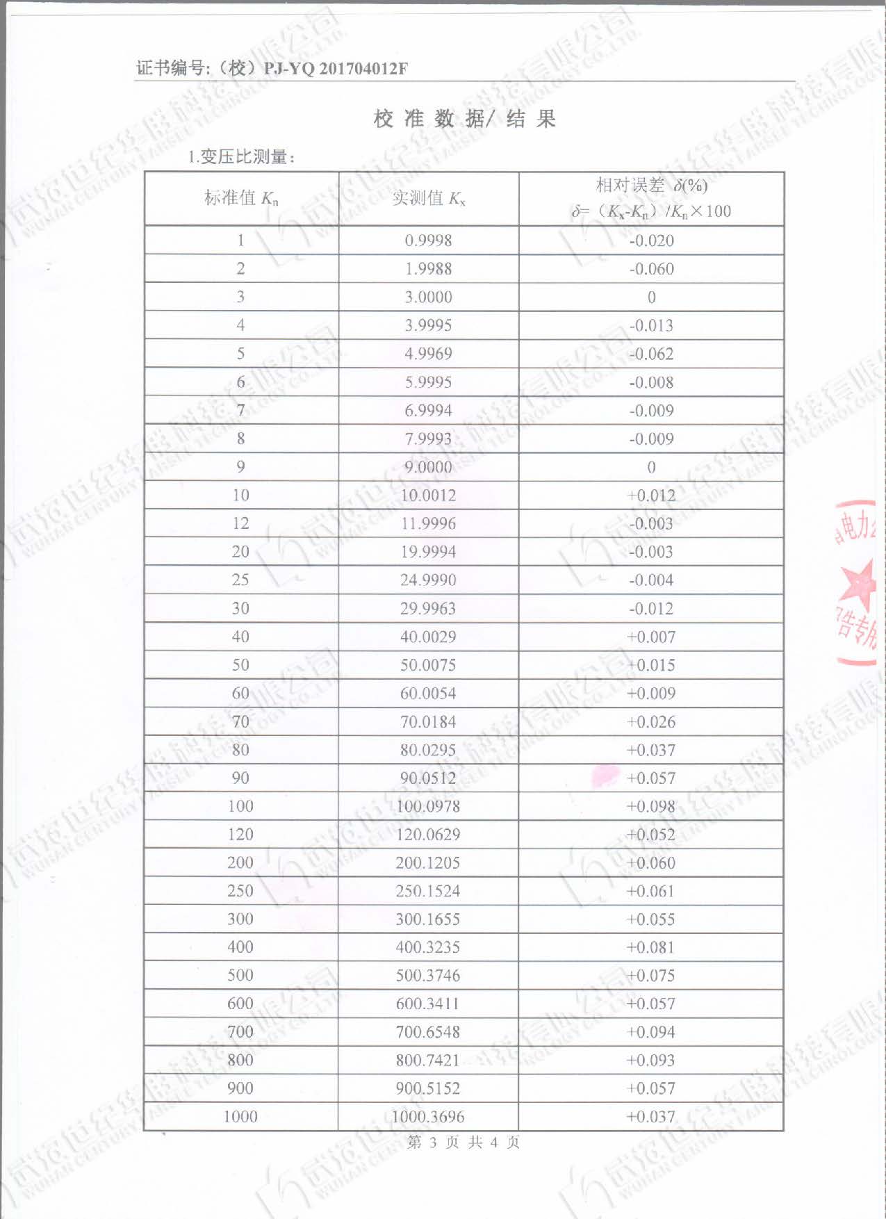 3、测量精度: 高压侧电压的测量精度:0.05%