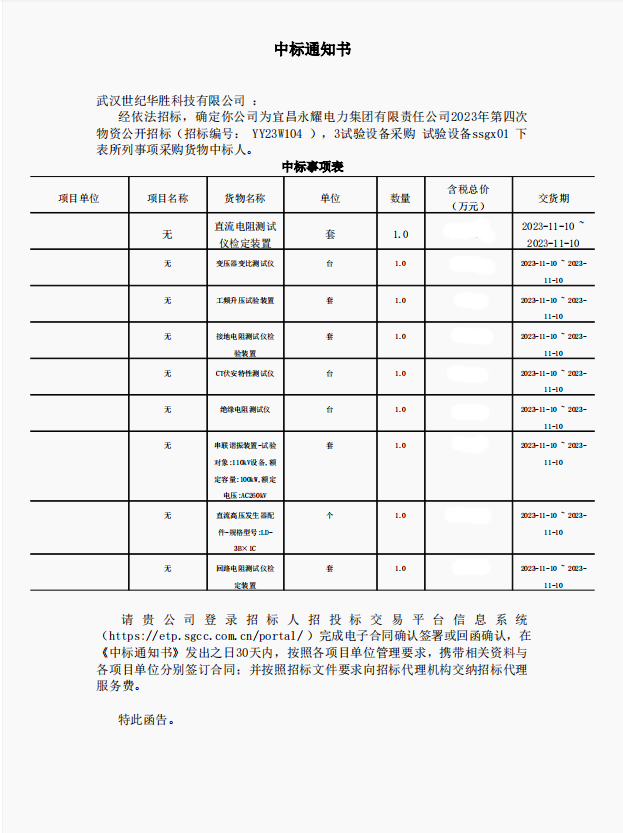 热烈庆祝快盈v8在宜昌永耀电力集团有限责任公司2023年第四次物资公开招标项目中标